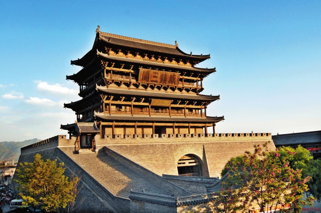 萬(wàn)里長(zhǎng)城第一樓——代縣古城邊靖樓。明洪武七年(1374年)始建,成化十二年(1476年)重建,由磚券洞臺(tái)基和三層四檐歇山頂樓身組成,基底東西長(zhǎng)43.3米,南北寬33.3米,臺(tái)高13.3米。樓身高26.7米,總高度達(dá)到40米。樓身面闊7間29.65米,進(jìn)深5間19.30米。二層檐柱之上施五踩重翹斗拱,三層檐下施五踩重昂。每層四周呈上下重疊柱網(wǎng)布局,四周圍廊,別具特色。斗拱非常規(guī)整,梁架精致奇巧,建造恢宏威嚴(yán),是中國(guó)最大的木質(zhì)鼓樓,比山海關(guān)靖邊樓高15米,比嘉峪關(guān)城樓高17米,比天安門(mén)高5.3米,被長(zhǎng)城專家考定為萬(wàn)里長(zhǎng)城第一樓。