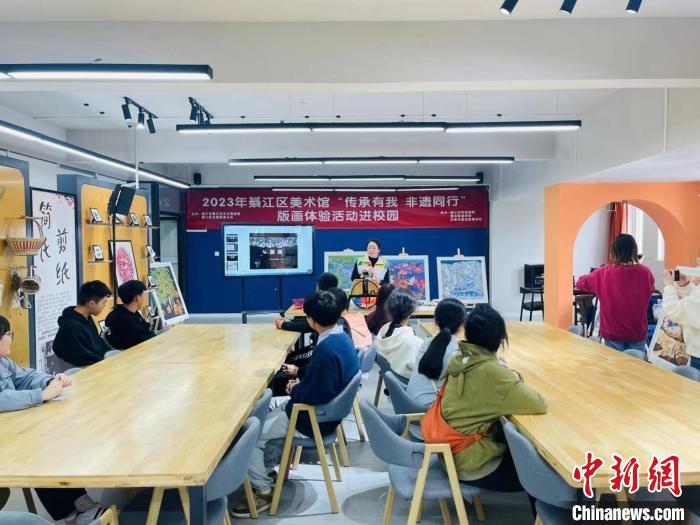 圖為綦江農民版畫走進校園活動現場。 綦江農民版畫院 供圖