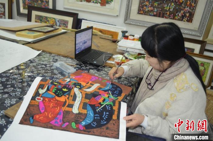 “小時候跟著奶奶學習納鞋底、刺繡,漸漸地喜歡上了繪制各種圖案,我的刺繡在村里也小有名氣。17歲那年,四川美術學院的老師到村里招收版畫學徒,我就報名了。當時條件很艱苦,很多人不理解,被家里人說不務正業(yè)。但我就是喜歡這些色彩、線條,一直堅持到現在。”交談中,李成芝談起她的版畫生涯。