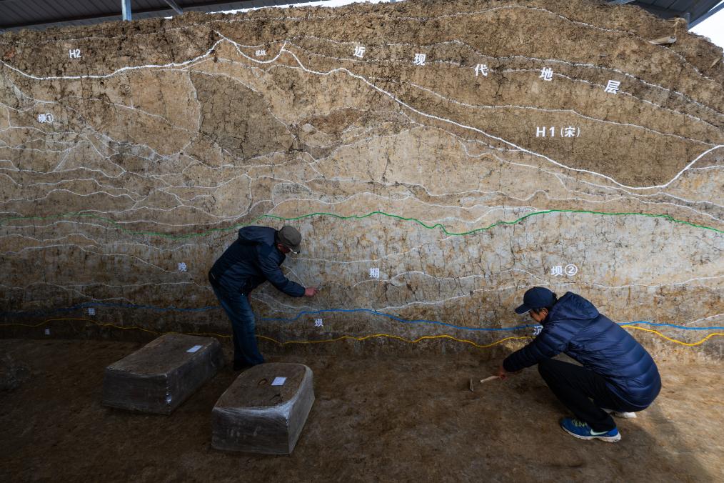 2023年12月4日,考古人員在熊家?guī)X水壩遺址現(xiàn)場(chǎng)進(jìn)行考古工作。新華社記者肖藝九 攝
