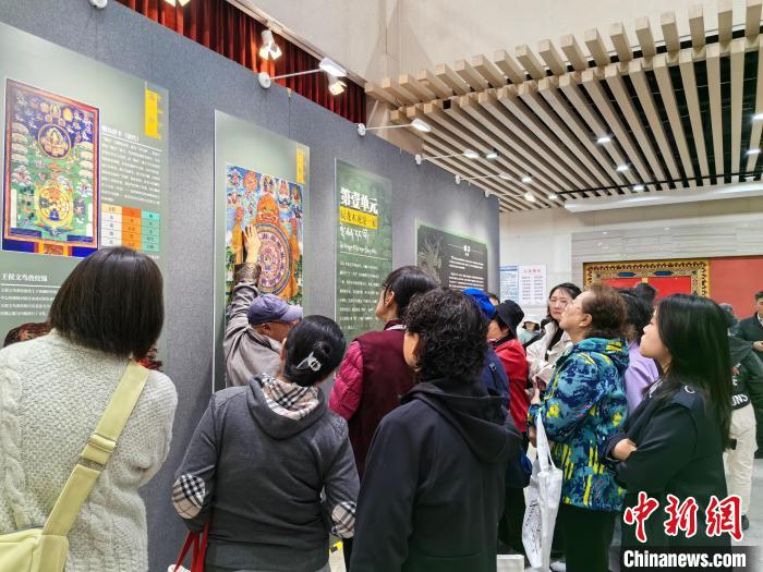 4月9日,金龍巧牽京藏情——《高原中華龍》主題展覽在北京西藏文化博物館開幕。圖為觀眾正在觀展。中新網(wǎng)記者 劉玥晴 攝 該展覽當天在北京西藏文化博物館開幕,通過大量圖片和實物,梳理中華龍文化傳至青藏高原的歷史脈絡,并集中展示西藏思想觀念、禮儀制度、宗教信仰和生產(chǎn)生活中的龍元素。 范久輝指出,元朝結(jié)束了青藏高原地區(qū)分裂割據(jù)的局面,將西藏地方納入中央王朝直接行政管轄之下,象征中央皇權(quán)并寓意祥瑞的龍鳳從此在青藏高原備受尊崇和喜愛。 “龍元素的使用在古代中原有較為嚴格的規(guī)定,但在西藏相對寬松,因此,當?shù)乇诋嫛⑻瓶?、印璽、馬具和家居上常見龍紋。”范久輝介紹。 他還結(jié)合廳內(nèi)展板內(nèi)容,為觀眾講解今年藏歷木龍年背后的歷算紀年法,“它以五行(木、火、土、金或鐵、水)為天干,以十二生肖對應的動物為地支,進行組合”。