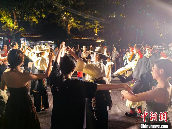 值得一提的是,為了讓觀眾更好地感受橫斷秘境的特色,開幕式當晚,甘孜州木雅文化藝術(shù)博覽中心的演員們繼續(xù)在中國刀剪劍博物館、中國傘博物館的運河入口處,進行鍋莊舞表演,帶領(lǐng)民眾共同感受鍋莊舞這一國家級非遺的魅力。