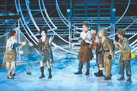 “劇中有句話叫‘真愛(ài)無(wú)坦途’?!标P(guān)渤說(shuō),它不僅在莎翁寫(xiě)下的精巧故事中,也外化在了這版《仲夏夜之夢(mèng)》的肢體表達(dá)上,“我們?cè)黾恿撕芏嘧?、跑、摔、爬的?dòng)作,同時(shí),在這樣的環(huán)境里,演員們的表演必須比平時(shí)放大夸張?!蔽枧_(tái)呈現(xiàn)上,一些著意設(shè)計(jì)的坡道、臺(tái)階也增強(qiáng)了追尋真愛(ài)的“坎坷”感,舞美設(shè)計(jì)張鹍鵬以錯(cuò)落有致框架結(jié)構(gòu)勾勒出城邦、森林的虛實(shí)場(chǎng)景,構(gòu)筑起似真非真的表演空間,帶來(lái)了封閉式劇場(chǎng)無(wú)法提供的戲劇體驗(yàn)。
