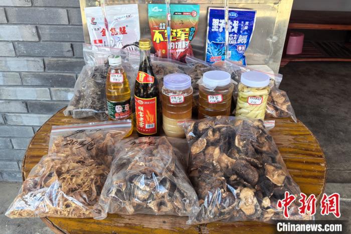 55歲的袁明發(fā)因患病喪失了勞動(dòng)力,村里人氣越來(lái)越旺,他在村干部建議下開起了小商店。商店門口的桌子上琳瑯滿目,擺著蜂蜜、干菇、筍干、茶油等土特產(chǎn)品?!吧獠诲e(cuò),自己家的不夠賣,還要向村里其他人收購(gòu)?!彼哪樕下冻鲂腋Pθ?。