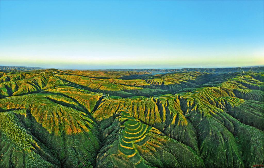 站在趙家溝的山頂看日出是一件賞心悅目的事情。8月4日早晨,當(dāng)朝陽(yáng)從東方的山巒噴薄而出,在萬(wàn)丈霞光的映照下,莽原織繡,梁峁吐翠,田疇如畫(huà),生機(jī)勃發(fā)。居高臨下看到的夏日晉北高原美景妙不可言,使人陶醉。