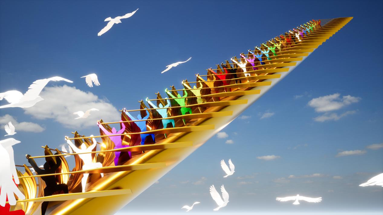 作品承載著長(zhǎng)征精神、延安精神在內(nèi)的紅色革命精神、抗疫精神,以及世界和平文化,將舟作為人類文明的象征,人類獲救的符號(hào),連接此岸與彼岸,連接文明與荒蠻,連接廣袤的宇宙,載來文明,送來曙光,舟行七千年歷史,厚載五千年文化的深層意義突顯出來,它載著億萬人民的偉大夢(mèng)想駛向民族復(fù)興的光輝彼岸,將中華民族與世界人民同舟共濟(jì)、拼搏奮進(jìn)、乘風(fēng)破浪的壯麗史詩寫在浩瀚無垠的太空與人類文明史上,藝術(shù)化的表達(dá)了對(duì)人類命運(yùn)共同體理念的追求。