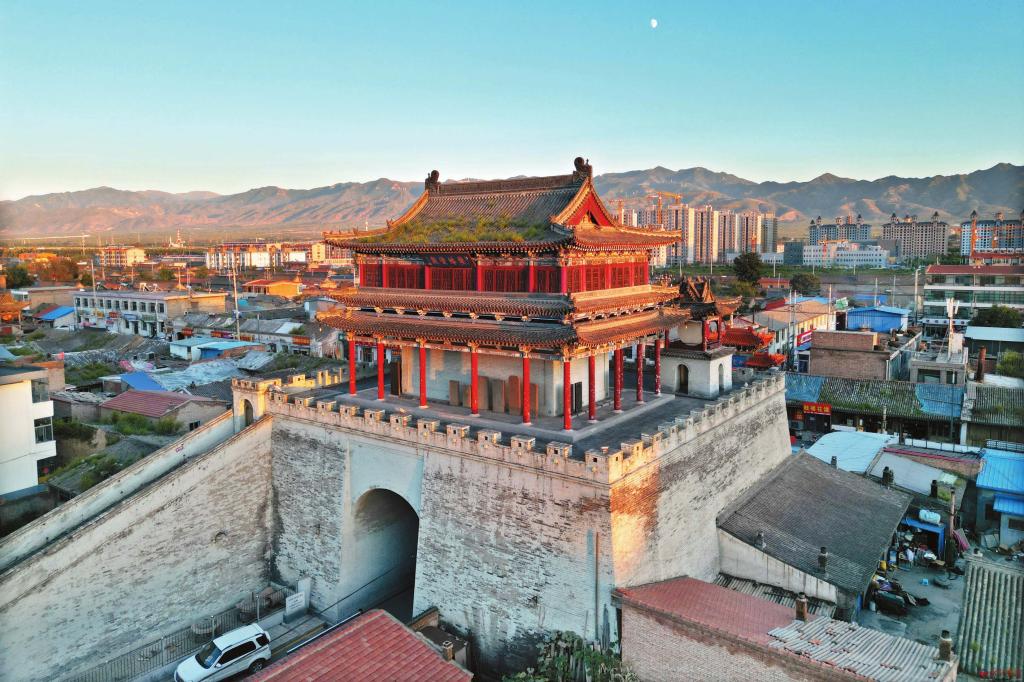 代州州城,趙武靈王胡服騎射置廣武縣,廣武,尚武擴(kuò)張也。廣武城在今代縣城西15里古城村,秦漢魏晉南北朝廣武縣治。東漢建武九年(33年),因王莽篡漢后,匈奴不斷侵?jǐn)_勾注以北,東漢光武帝劉秀暫棄陘北,南遷雁門郡郡治善無(王莽陰館)于太原郡廣武境內(nèi),在此筑城為郡治,稱上館城。建武二十六年(50年)驅(qū)走匈奴,恢復(fù)雁門郡舊土,郡民重歸本土。雁門郡郡治又從廣武上館城遷回陰館下館城。做了17年雁門郡郡城的代縣上館城,城和城名都保留下來。太原郡廣武縣治仍在廣武古城。東漢建安二十年(215年),析太原郡北部置新興郡,廣武縣劃歸雁門郡,仍治廣武古城。曹魏黃初二年(221年)因匈奴屢犯勾注山以北地帶,雁門郡治所由陰館遷于廣武城,從此改治“廣武”。晉懷帝永嘉四年(310年),劉琨徙馬邑、陰館、樓煩、繁峙、崞五縣于陘南,更立城邑,完全放棄了陘北之地。雁門郡遂完全進(jìn)入陘南。北魏置肆州后,肆州雁門郡只剩了廣武、原平兩縣,郡治廣武古城。到北魏孝明帝(515年—528年)時,重建上館城,雁門郡郡治與廣武縣治皆遷于上館城,即今代縣城,廣武古城廢。北周肆州治從今忻州城遷于上館城中,隋文帝改肆州為代州,改廣武縣為雁門縣。代州領(lǐng)雁門、繁峙、崞、五臺四縣。明洪武六年,吉安侯陸亨、都指揮王臻以磚砌城。周圍八里一百八十五步,高三丈五尺,護(hù)城河池深二丈一尺,中有活水,四面故生蓮。洪武八年,復(fù)稱代州。門四,甕城各一,各建重樓、角樓四座,鋪舍五十,南無關(guān),東、西、北關(guān)土城各一。景泰、成化中,添筑東北二關(guān)城。歷代皆有修葺。州城四門:東熙和,沐東陽熙合和融;南迎薰,迎南方香薰之風(fēng);西康阜,喜康莊物阜民豐;北鎮(zhèn)朔,鎮(zhèn)朔方州境安寧。