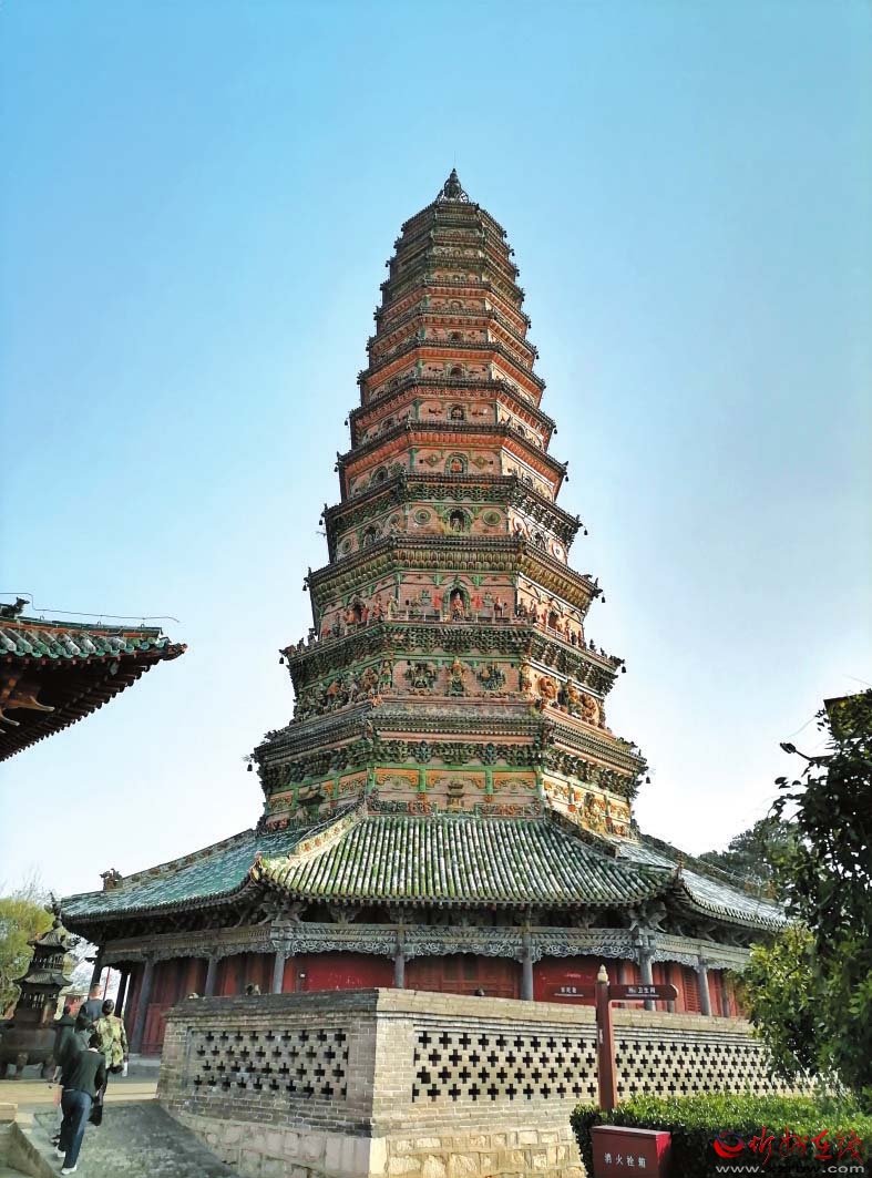 在洪洞縣,有一座舉世聞名的佛教古剎廣勝寺,“三絕一奇”令人驚嘆。一絕是飛虹琉璃塔,是廣勝寺標(biāo)志性建筑,被推為全國(guó)第一塔,塔身外部有七色琉璃構(gòu)件與裝飾圖形,每一層都有一組中心圖案,生動(dòng)逼真,色彩艷麗,被認(rèn)證為“世界最高的多彩琉璃塔”。二絕是《趙城金藏》,是玄奘從天竺取回的梵文經(jīng)卷中譯善本,世界上僅此一部,被譽(yù)為稀世珍寶。三絕是元代壁畫(huà)。內(nèi)容以祈雨、行雨、酬神等生活場(chǎng)景為主,布局嚴(yán)謹(jǐn),造型生動(dòng),堪稱(chēng)我國(guó)風(fēng)俗神話題材的壁畫(huà)杰作。一奇是左右扭古柏,有1300余年歷史,一東一西,像兩位護(hù)法將軍守衛(wèi)著大殿。兩株古柏,左邊的朝左扭,右邊的向右扭,甚為奇特。