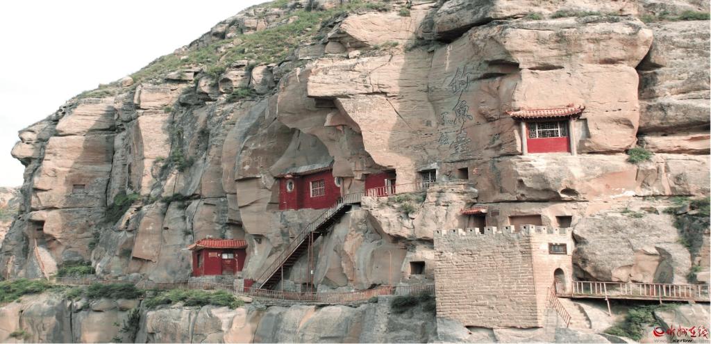 故城石窟位于保德縣楊家灣鎮(zhèn)故城村西1500米、黃河?xùn)|岸石崖上。清順治二年(1645),由陳奇瑜構(gòu)筑,歷時(shí)三年建成,建有呂仙祠等建筑。故城石窟坐東向西,占地面積約600平方米。向南石砌的古堡式門(mén)洞,門(mén)洞上方匾書(shū)“釣魚(yú)臺(tái)”,頂部砌有女兒墻垛口。山壁上有大小不等的10孔人工開(kāi)鑿的石窟。