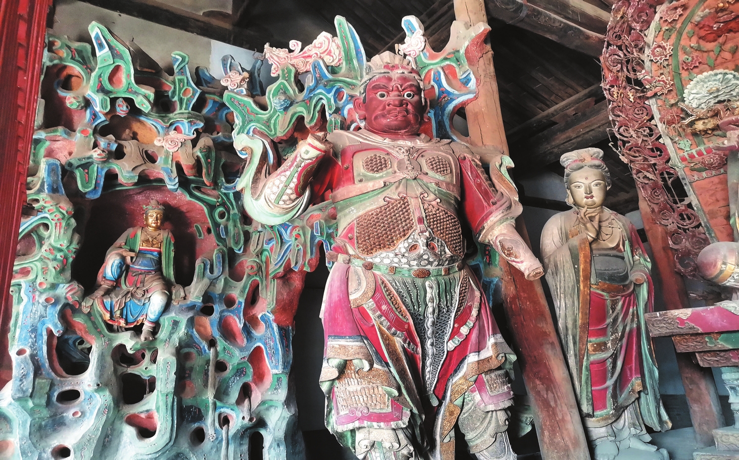 定襄北社洪福寺紅臉文殊懸塑宮清華攝