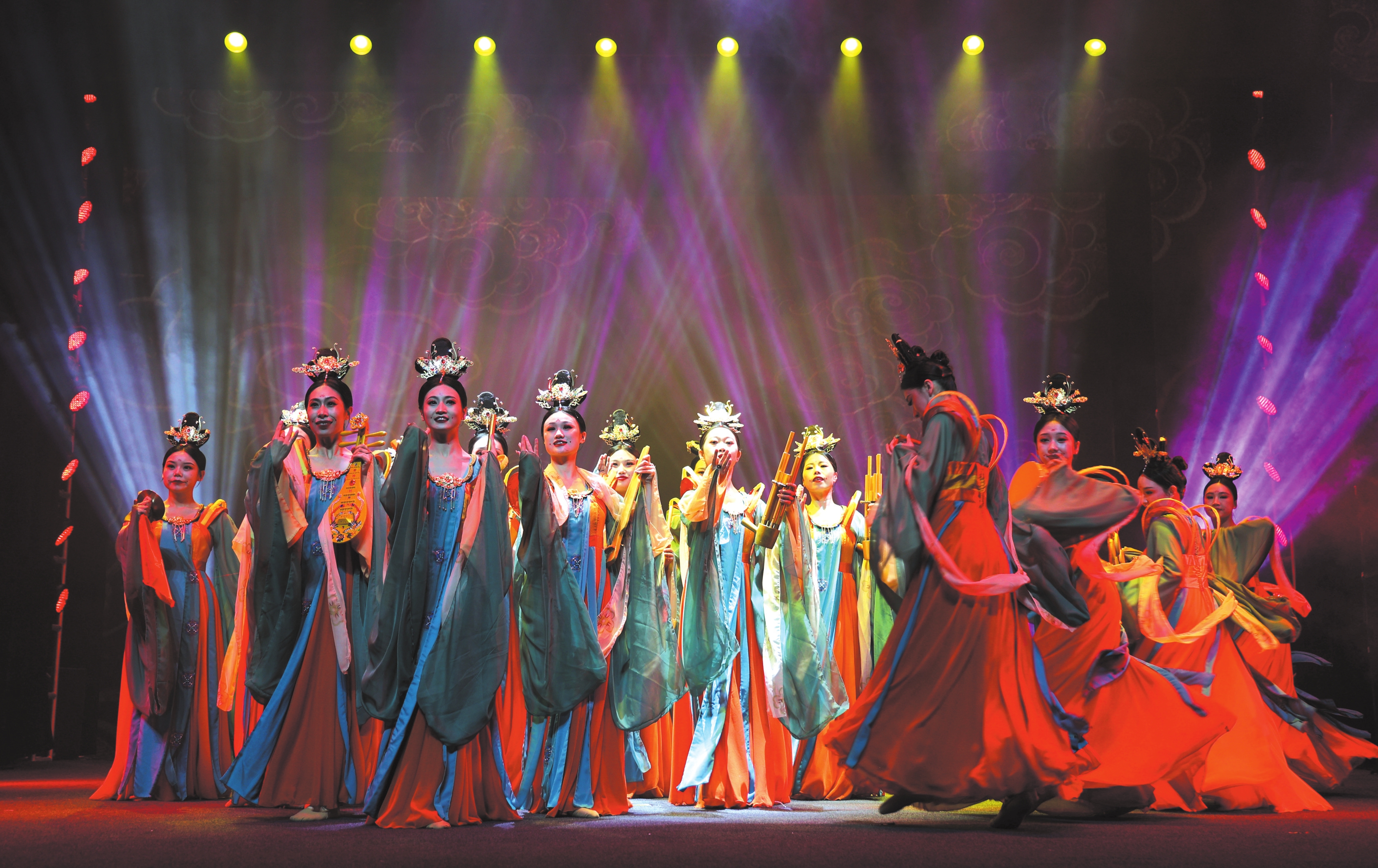 仙樂飄飄、衣袂翩躚……2025年年初,在忻州市元旦晚會上,以《洪福周天》為名的舞蹈節(jié)目被重磅推出,群眾們第一次領(lǐng)略到了“18樂伎”的舞臺藝術(shù)魅力,十八位身著復(fù)原古裝的舞者從靜止的懸塑造型開始,隨著音樂逐漸蘇醒,展開一場跨越時空的音樂對話。節(jié)目最后,舞者又緩緩回歸最初的靜態(tài)姿勢,好像完成了一次藝術(shù)的輪回。