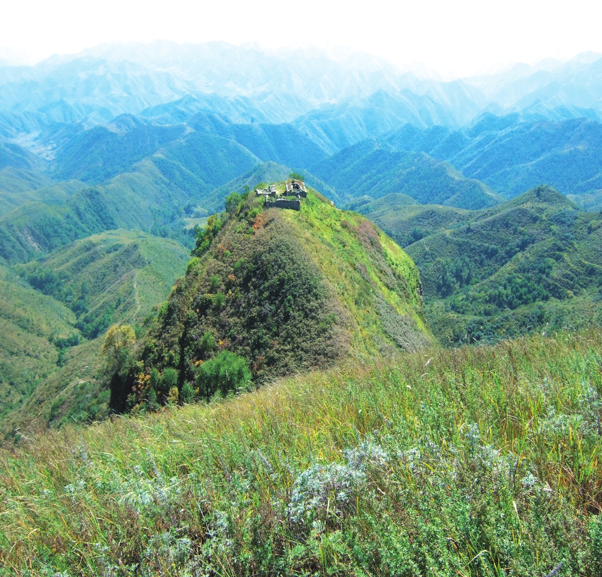 坡道在不斷升高,玉皇峁進(jìn)入我們的視野。在玉皇峁的腳下,我們看到了一處貌似村落的遺址,有磚石瓦礫散落,有殘存的石砌墻垣,有石頭筑堰的小塊梯田……玉皇峁村是一個(gè)自然村,但不知建于何時(shí),亦不知廢于何時(shí)。玉皇峁村的故事,早已消逝在千百年的煙云中,我們無(wú)法還原往昔歲月里的真相。