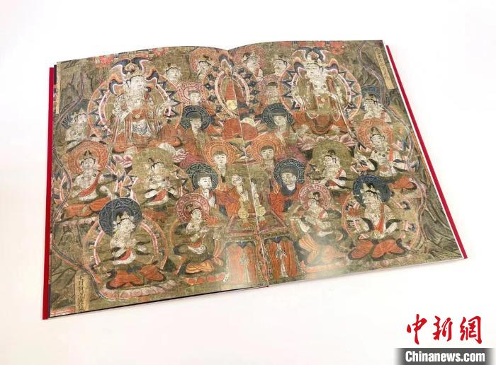 茹實說,該書含100余張高清圖版,對絹畫各部分如說法圖、經變故事圖、經變文、發(fā)愿文等采用分段展示細節(jié)的方法,每幅圖均配以詳實的文字說明。為便于讀者欣賞絹畫全貌,在扉頁處特別裝幀一幅絹畫高清大圖拉頁。
