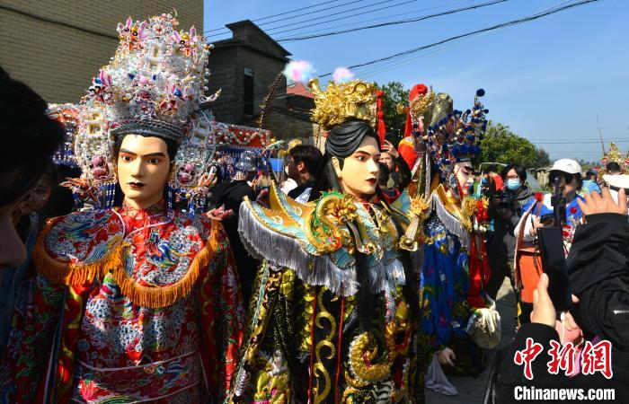 圖為傳統(tǒng)游神民俗活動(dòng)中的巡游隊(duì)伍。中新網(wǎng)記者 呂明 攝