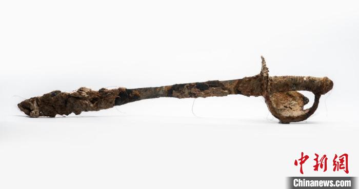 “來遠”艦遺址出水的海軍軍刀。山東省水下考古研究中心供圖