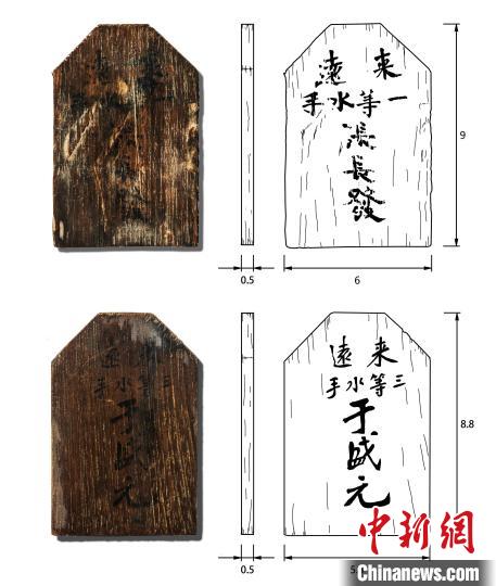 "來遠"艦遺址發(fā)掘出水兩塊水手身份木牌。山東省水下考古研究中心供圖