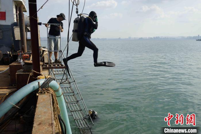 資料圖:全副武裝的考古人員入水探摸水下遺存情況。山東省水下考古研究中心供圖