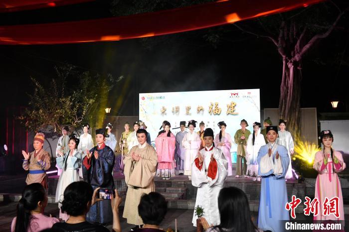 圖為參加“宋詞里的福建”沉浸式戲劇演出的演員出場謝幕。 中新網(wǎng)記者 呂明 攝