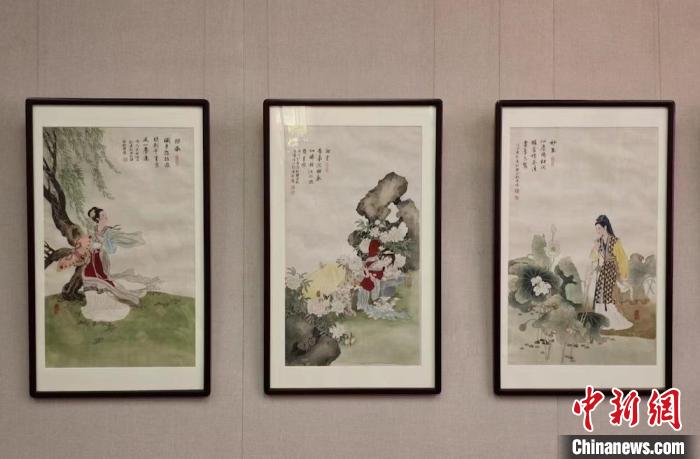 彭連熙紅樓夢(mèng)書(shū)畫(huà)展在馮其庸學(xué)術(shù)館舉行。孫權(quán) 攝 彭連熙筆下的紅樓人物譽(yù)滿海內(nèi)外,其工筆人物形象生動(dòng)傳神,風(fēng)姿綽約,畫(huà)風(fēng)典雅清麗、沉靜內(nèi)斂。此次展覽展示的56幅《紅樓夢(mèng)》系列書(shū)畫(huà)作品均由彭連熙創(chuàng)作,這些作品不僅展現(xiàn)了他對(duì)《紅樓夢(mèng)》及中華優(yōu)秀傳統(tǒng)文化的深刻理解和精湛的藝術(shù)表現(xiàn)力,也為公眾提供了一次難得的近距離欣賞和學(xué)習(xí)的機(jī)會(huì)。