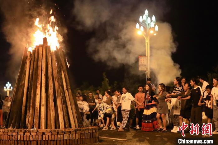 跳躍的火苗映出男女老少微笑的面龐,人們手牽著手,圍著熊熊燃燒的巨大篝火,隨著音樂的律動跳起達體舞,狂歡的夜晚似乎沒有盡頭……29日晚,在四川省涼山州西昌市,燃燒的火把映紅了天空。