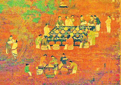 一日三餐實際上到宋代才逐漸普及,原先是一日兩餐,上午下午各一餐。宋人對飲食非常講究,“凡飲食珍味,時新下飯,奇細蔬菜,品件不缺”。市場的繁榮,對飲食的精致追求,促使宋朝誕生了花樣繁多的美食,《東京夢華錄》《夢粱錄》《武林舊事》中都羅列了長長的美食、小吃、點心名單,不計其數(shù)。