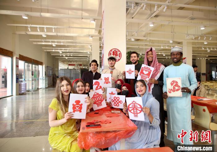 為了更加深入地感受中國(guó)“年”味,活動(dòng)現(xiàn)場(chǎng),外國(guó)友人們還體驗(yàn)了舞龍舞獅、剪紙等傳統(tǒng)春節(jié)習(xí)俗。伴隨著熱烈歡快的音樂(lè),外國(guó)友人們反復(fù)練習(xí)舞龍舞獅的動(dòng)作,現(xiàn)場(chǎng)一片歡聲笑語(yǔ)。