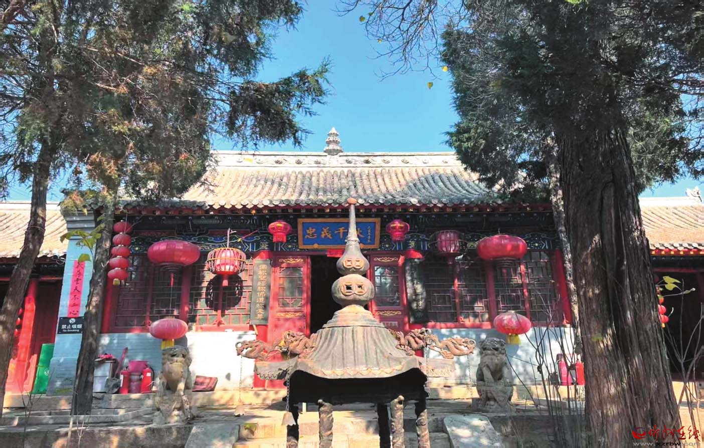 大建安關(guān)帝廟位于五臺(tái)縣建安鄉(xiāng)大建安村中央,為市級(jí)文物保護(hù)單位,始建年代不詳。正殿脊檁墨題“大清嘉慶五年(1800年)”。該廟坐北朝南,四合院落布局,占地面積866平方米。現(xiàn)存山門,硬山頂,灰瓦布頂。五步臺(tái)階,看墻呈八字,中柱安板門,兩側(cè)置余塞板,走馬板墨書“武廟”。左右為鐘、鼓樓,二層。正殿,面寬三間,進(jìn)深四椽,硬山頂,灰瓦布頂,棱型檐椽,平板枋尺寸較大。殿內(nèi)東西墻繪三國(guó)演義的新壁畫26平方米,正殿兩側(cè)朵殿各有三間。依梁架結(jié)構(gòu)分析,正殿建于明代,其他為清代。