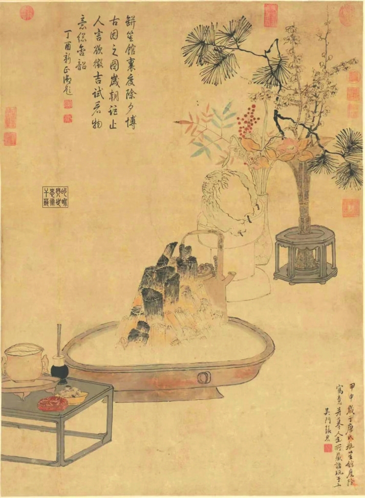 明代文人插花在花材的擇取上追求自然本真之美,在花器的選配上推崇古樸清雅之韻,究其根本,蓋因花卉與器物皆為文人寄托情志之載體。