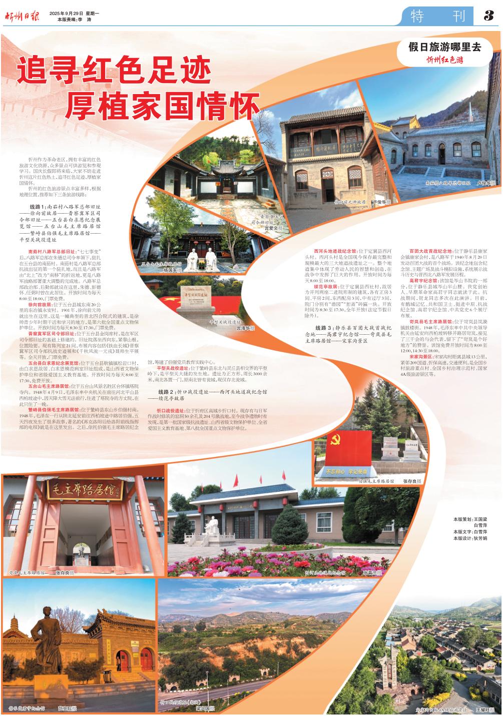 忻州的紅色旅游景點(diǎn)豐富多樣,根據(jù)地理位置,推薦如下三條旅游線路: