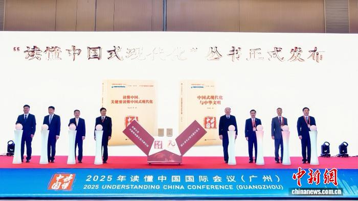 在2025年“讀懂中國(guó)”國(guó)際會(huì)議(廣州)上,與會(huì)嘉賓共同為新書揭幕。(主辦方供圖)
