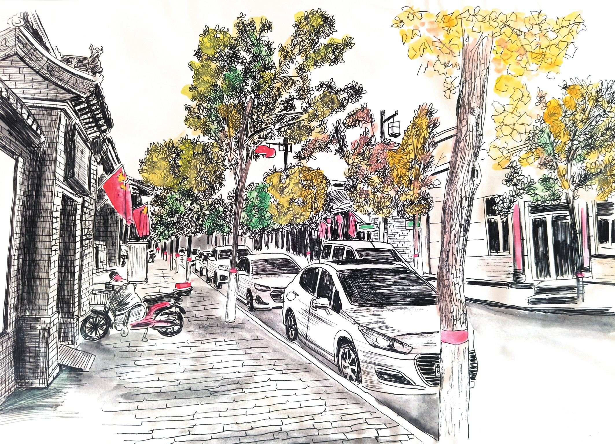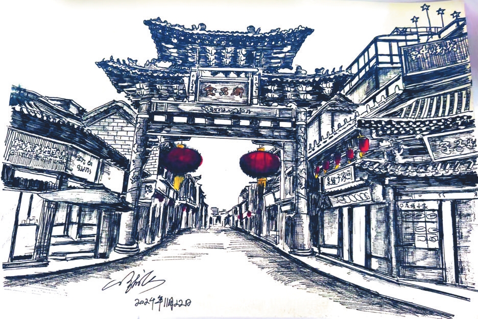 作為一種獨特的藝術形式,鋼筆畫以其細膩的線條、嚴謹?shù)臉媹D,通過控制握筆的速度和力度,畫出不同粗細的線條,從而表現(xiàn)物象。岢嵐縣美術教育工作者侯龍飛近年來通過鋼筆畫記錄生活、表達情感,他的系列鋼筆畫《忻州古城》《岢嵐街景》等作品描繪城市變遷與時代風貌走紅網(wǎng)絡。