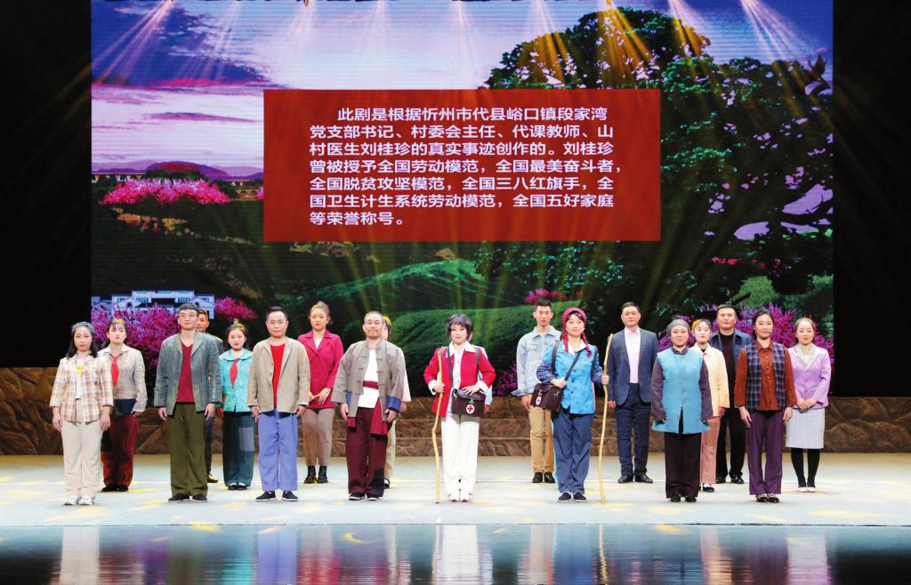 得知自己飾演女主角柳玉珍,演員蘇瑞芳背后做了很多功課,親自到段家灣與原型劉桂珍“零距離”接觸。聽(tīng)完桂珍大姐的故事,蘇瑞芳內(nèi)心無(wú)比震撼,為了更好地塑造角色,一有空閑就拉著搭檔“開(kāi)小灶”,反復(fù)打磨動(dòng)作?!拔枧_(tái)上的每個(gè)人物都有生活原型,每段劇情都是根據(jù)真實(shí)事件改編而來(lái)?!碧K瑞芳動(dòng)容地說(shuō),“現(xiàn)實(shí)中桂珍大姐遇到的情況可能比舞臺(tái)上表現(xiàn)得更困難,但她卻始終不忘初心,扎根農(nóng)村,身兼‘四職’,承擔(dān)起脫貧攻堅(jiān)領(lǐng)頭雁、治病救人好醫(yī)生、教書(shū)育人好老師、扎根基層好黨員等多重角色,以引領(lǐng)村民脫貧致富為己任,忠實(shí)踐行一名共產(chǎn)黨員的神圣使命。她身上的優(yōu)秀品質(zhì)值得我們每一個(gè)人學(xué)習(xí),我為自己能夠有機(jī)會(huì)飾演她感到驕傲自豪!”