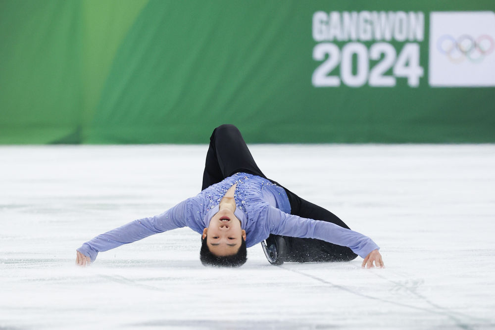 在男子單人滑自由滑比賽中,田桐赫得到112.24分,以179.32分的總成績(jī)?cè)谌?8名參賽選手中排名第八。金賢謙在短節(jié)目只排第三的情況下,憑借自由滑拿下的高分成功奪冠。