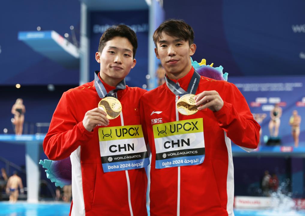 男雙3米板決賽中,王宗源/龍道一以442.41分的成績奪冠。這是王宗源繼2022布達佩斯、2023福岡后,第三次奪得世錦賽該項目冠軍。意大利組合馬爾薩利亞/托奇、西班牙組合阿瓦迪亞/博伊西爾分獲亞軍和季軍。