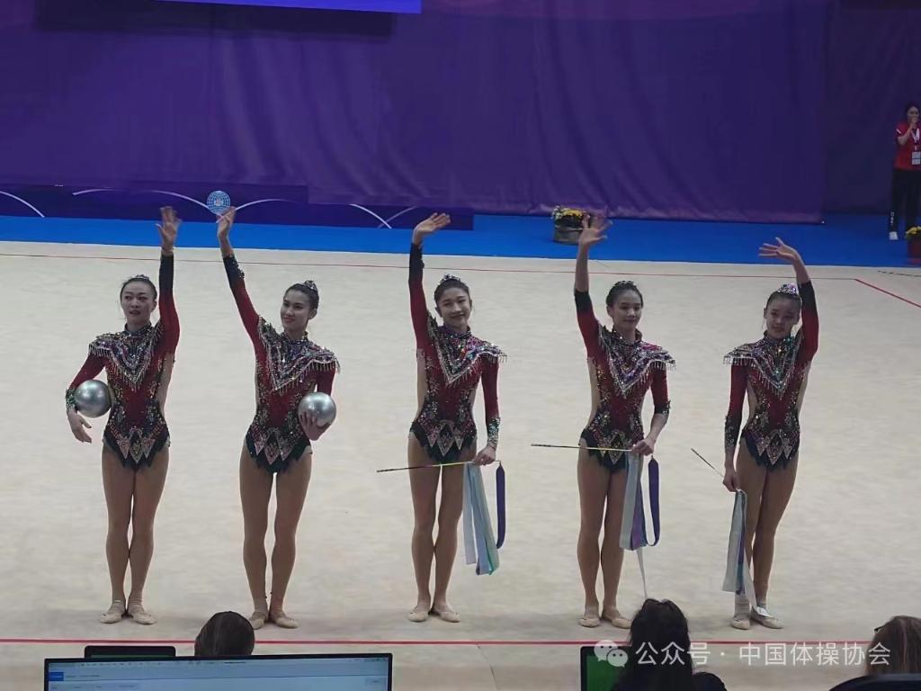 最終,中國(guó)隊(duì)在本站比賽共獲得1金1銀2銅。在集體項(xiàng)目里,中國(guó)隊(duì)獲得全能銀牌,5圈和3帶2球單項(xiàng)的銅牌。本賽季,集體組為備戰(zhàn)巴黎奧運(yùn)會(huì)準(zhǔn)備了兩套全新節(jié)目,其中5圈項(xiàng)目《共生共舞》呈現(xiàn)環(huán)保主題,更具國(guó)際化視野;3帶2球項(xiàng)目的成套《鳳鳴凌霄》則以漢唐國(guó)風(fēng)為主題,通過(guò)運(yùn)用彩帶模擬造型,表現(xiàn)古箏、琵琶等中國(guó)民族樂器的獨(dú)特韻味。