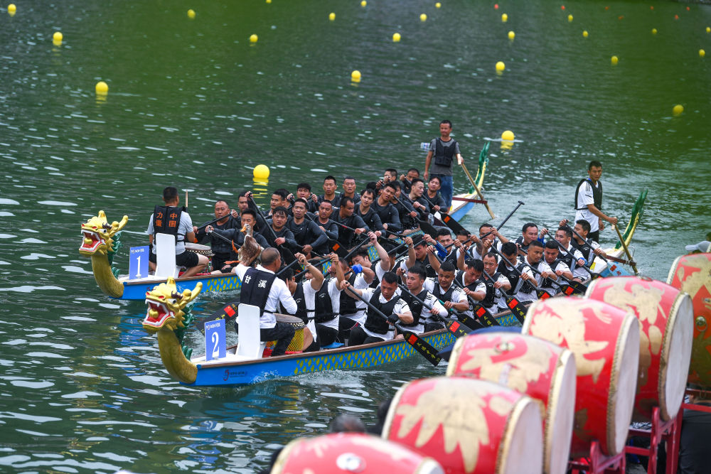 全國龍舟比賽設(shè)男子直道競速500米、200米項目;獨竹漂比賽設(shè)男子、女子直道競速100米、200米項目。此外,鎮(zhèn)遠縣還設(shè)置傳統(tǒng)龍舟賽,分為公開組和女子組直道競速500米、社區(qū)組競速表演500米項目。在10日進行的傳統(tǒng)龍舟社區(qū)組比賽中,共有12支隊伍經(jīng)過40場次的激烈比拼決出前八名。