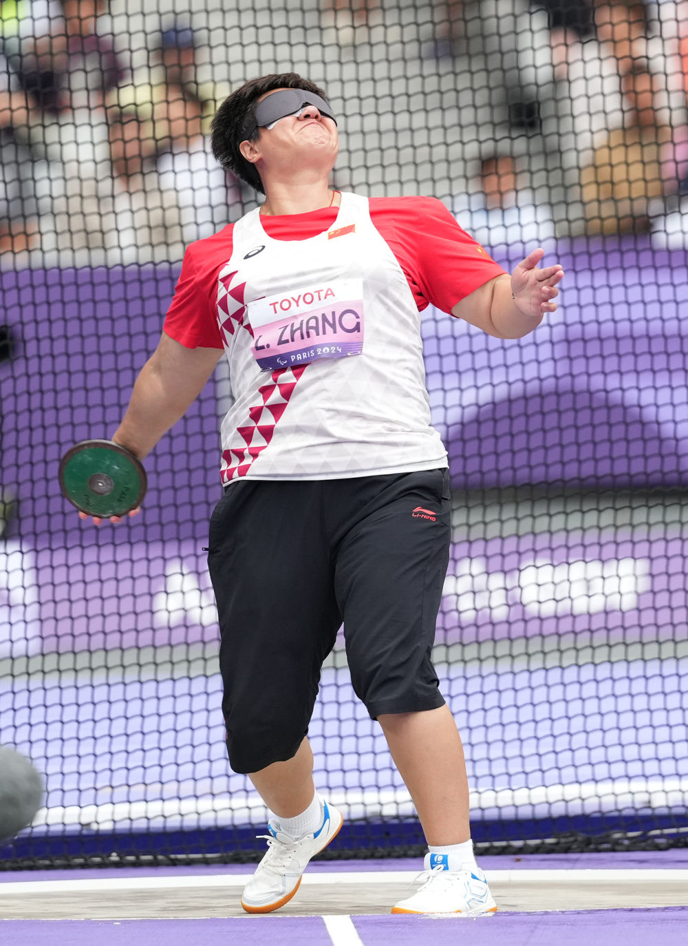 隨后的女子鐵餅F11級決賽中,中國選手張亮敏同樣以個人賽季最佳成績奪金。她第二擲的成績達到39米08,以絕對優(yōu)勢獲得金牌。