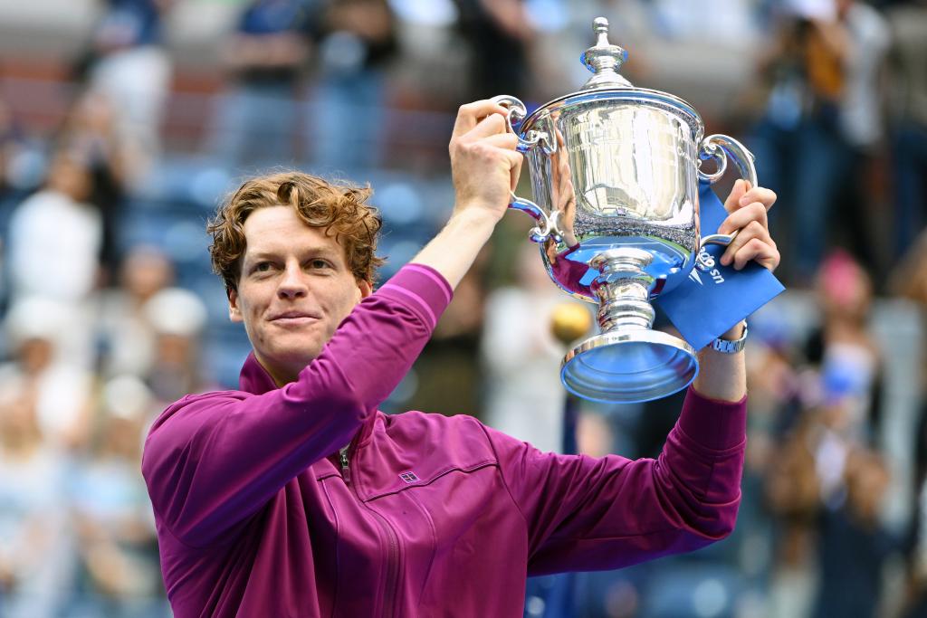 9月8日,辛納在頒獎儀式上舉起獎杯。新華社記者 李睿 攝