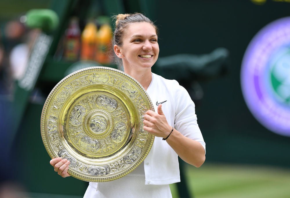 2019年7月13日,哈勒普在溫網(wǎng)奪冠后手捧冠軍獎(jiǎng)盤。新華社記者 逯陽(yáng) 攝