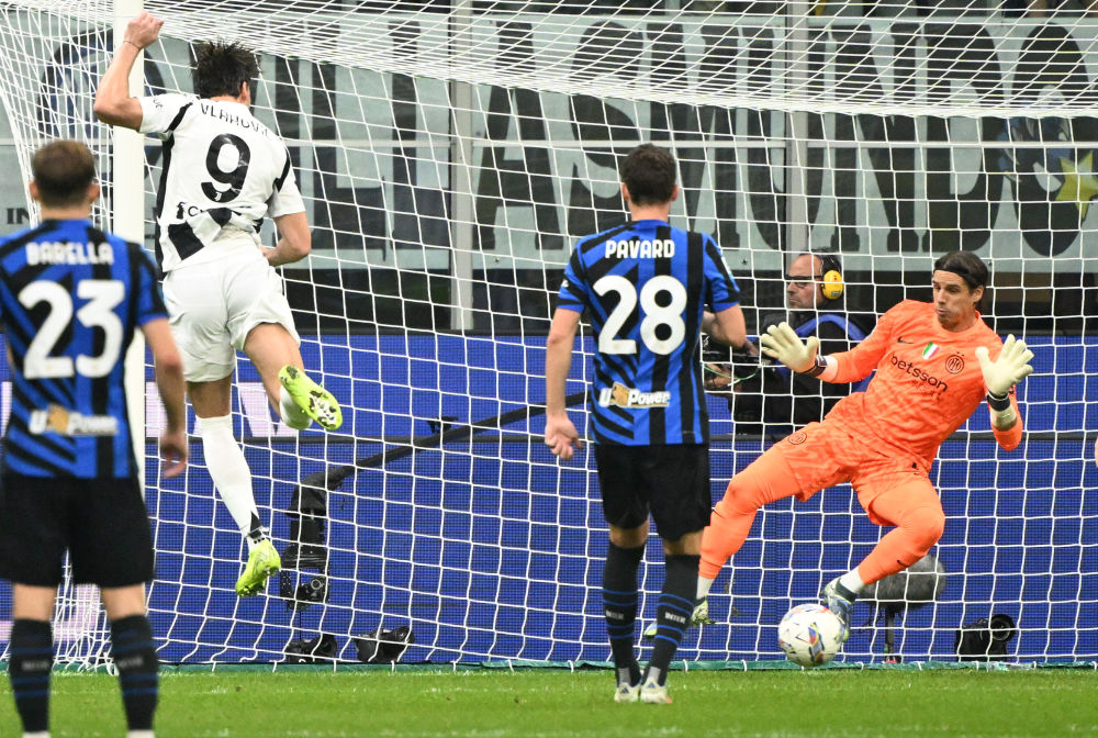 國際米蘭當(dāng)日開局不久便先拔頭籌,第15分鐘,圖拉姆禁區(qū)內(nèi)被踢倒造點(diǎn),澤林斯基主罰命中。不過“藍(lán)黑軍團(tuán)”的領(lǐng)先優(yōu)勢并未持續(xù)太久,第19分鐘,麥肯尼接卡瓦爾挑傳,門前為弗拉霍維奇送上橫傳助攻,后者輕松破門;第26分鐘,“老婦人”實(shí)現(xiàn)逆轉(zhuǎn),小將孔塞桑助攻維阿打進(jìn)一球。