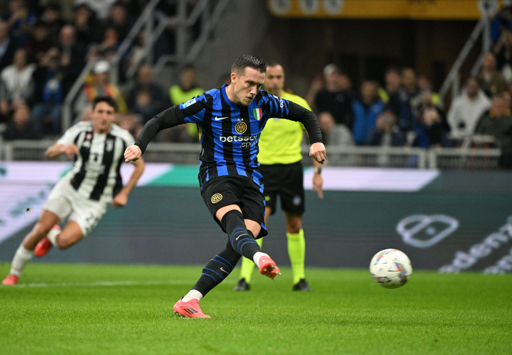 10月27日,國際米蘭隊(duì)球員澤林斯基在比賽中主罰點(diǎn)球得分。新華社發(fā)(阿爾貝托·林格利亞 攝)