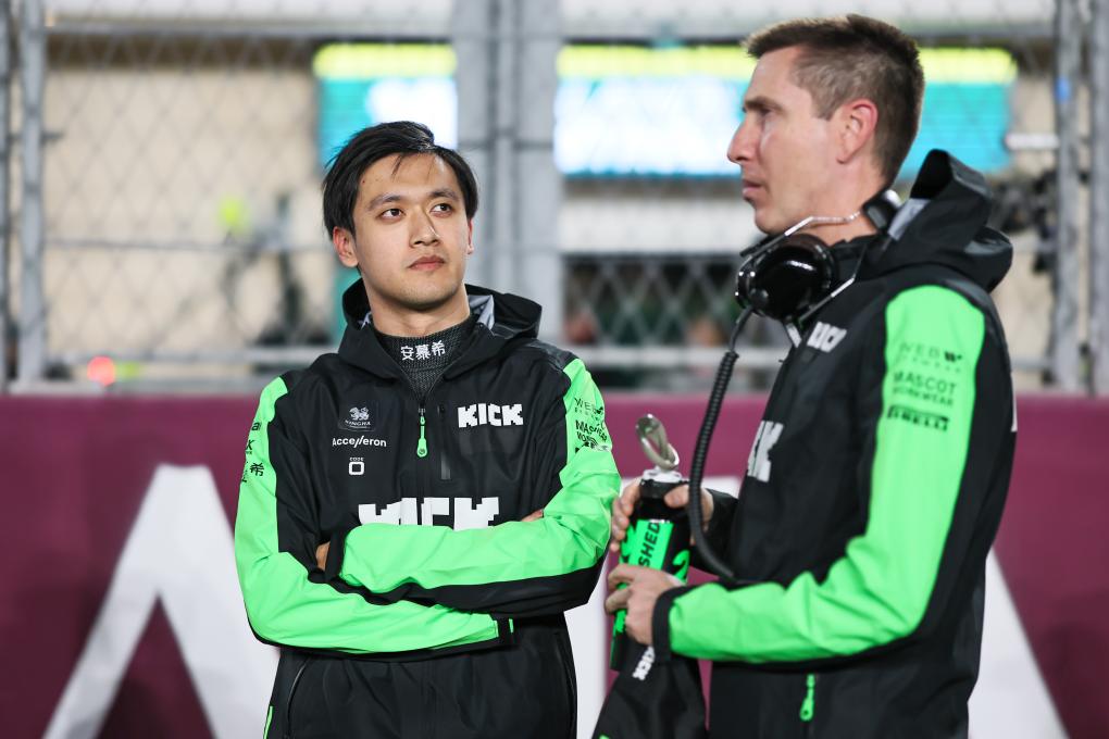12月1日,索伯車隊中國車手周冠宇(左)在比賽前。新華社發(fā)(錢俊攝)