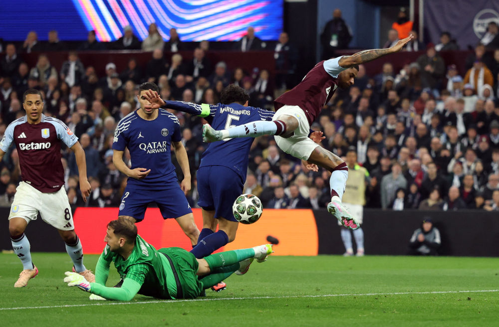 在維拉公園球場(chǎng)的雨戰(zhàn)中,首回合主場(chǎng)3:1勝出的巴黎圣日耳曼先聲奪人。第11分鐘,登貝萊左路突破后橫傳門前,維拉門將馬丁內(nèi)斯撲球失誤,阿什拉夫抓住機(jī)會(huì)勁射破網(wǎng)。“大巴黎”在第27分鐘打出高效反擊,登貝萊助攻左后衛(wèi)門德斯低射命中,將領(lǐng)先優(yōu)勢(shì)擴(kuò)大為2:0。