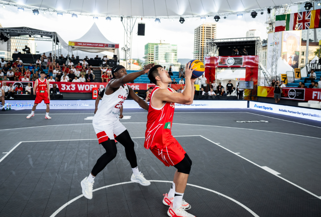 中國(guó)隊(duì)球員在對(duì)陣加拿大隊(duì)的比賽中準(zhǔn)備投籃。圖片來(lái)自國(guó)際籃聯(lián)官網(wǎng)