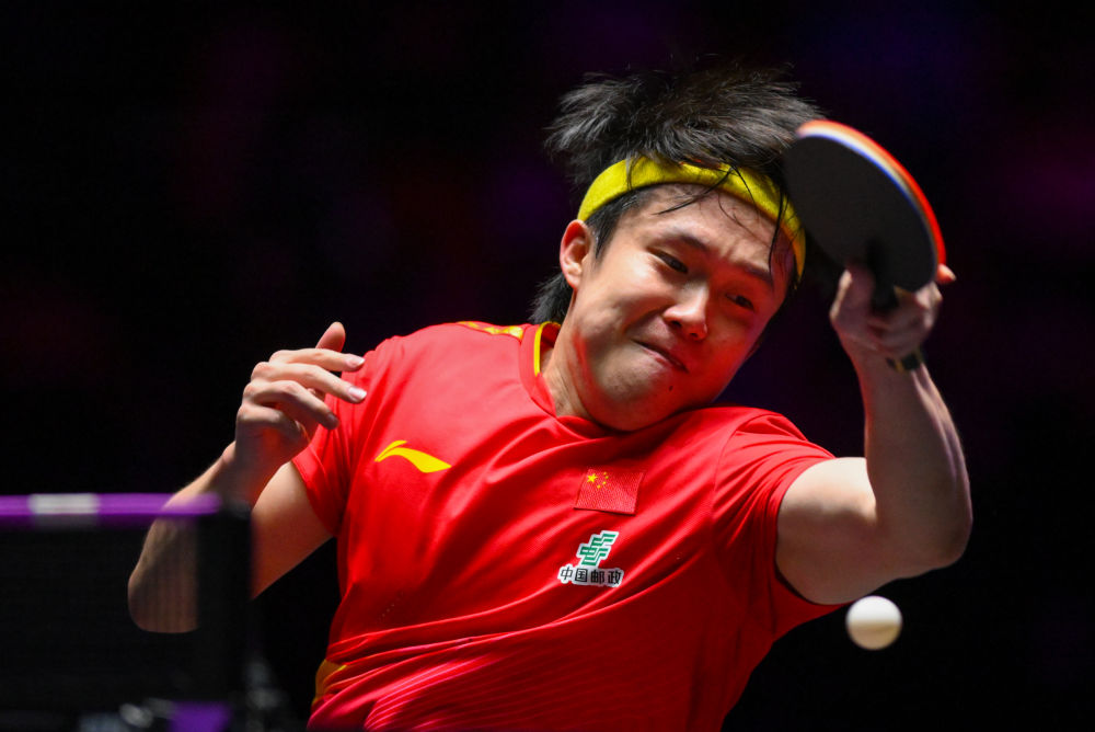 9月9日,王楚欽在比賽中回球。新華社發(fā)(張金加攝)