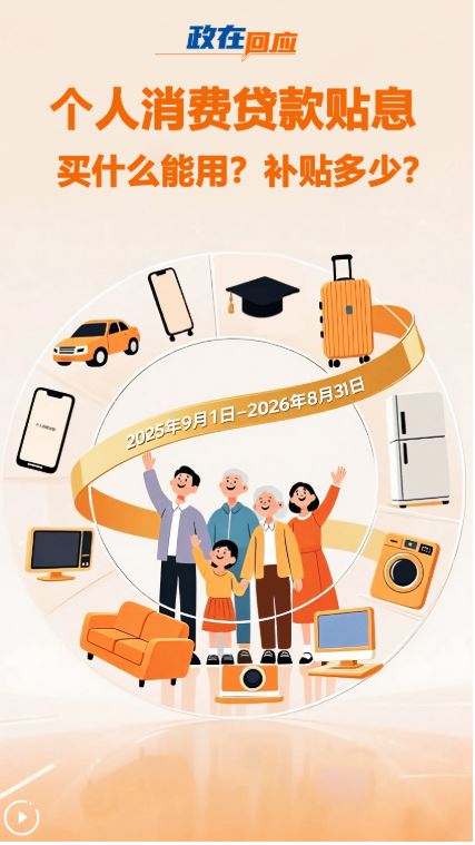 9月1日起一年時(shí)間內(nèi),《個(gè)人消費(fèi)貸款財(cái)政貼息政策實(shí)施方案》給消費(fèi)者送來福利!這項(xiàng)政策直接惠及廣大人民群眾,是中央財(cái)政首次對個(gè)人消費(fèi)貸款進(jìn)行貼息。