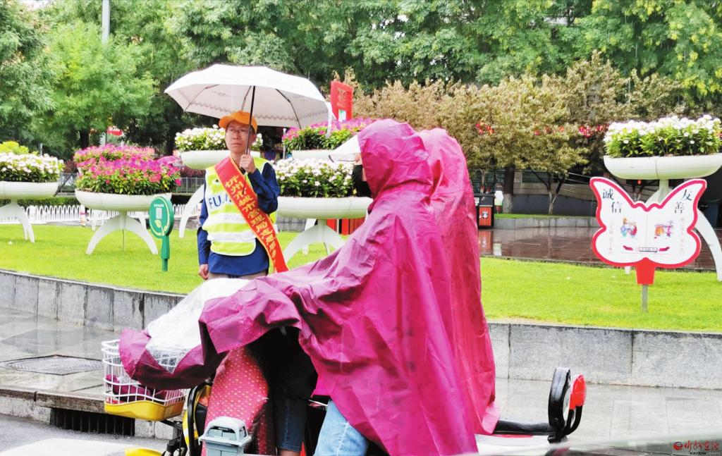 8月31日7點(diǎn)40分,我市城市管理局志愿者早早來到執(zhí)勤崗位,在風(fēng)雨中配合交警在長征街與七一路口維持交通秩序,對(duì)橫穿馬路、亂闖紅燈等不文明交通行為進(jìn)行勸導(dǎo),引導(dǎo)市民遵守交通法規(guī),提高安全意識(shí),用實(shí)際行動(dòng)為創(chuàng)建文明城市做貢獻(xiàn)。曹建華 攝