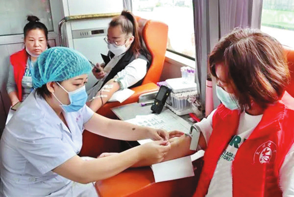 9月4日,小雨。河曲縣青年志愿者協(xié)會的志愿者們一早就來到獻血車前,在工作人員的指導(dǎo)下,按流程填寫資料、測量血壓、采血,有序等候獻血。在獻血隊伍中,有多次獻血的“老將”,也有初次上陣的“新兵”,鮮血隨著愛心流淌。當天,23名青年志愿者獻血總量達8800毫升。(劉宇婷 攝)