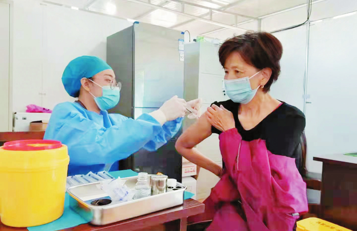 日前,在河曲縣醫(yī)療集團新冠疫苗接種點,醫(yī)務人員每天堅守崗位,早出晚歸,加班加點為群眾進行疫苗接種。(尹海青 攝)