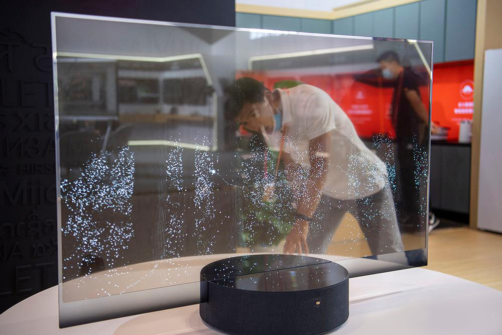 △2020年服貿(mào)會綜合展區(qū),參觀者正在感受透明電視。